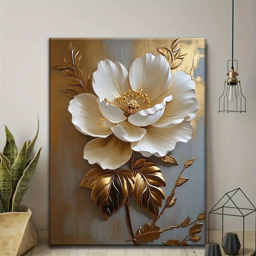 Be the first to review “Elegant White Floral Canvas Art Vintage Gold Flower”